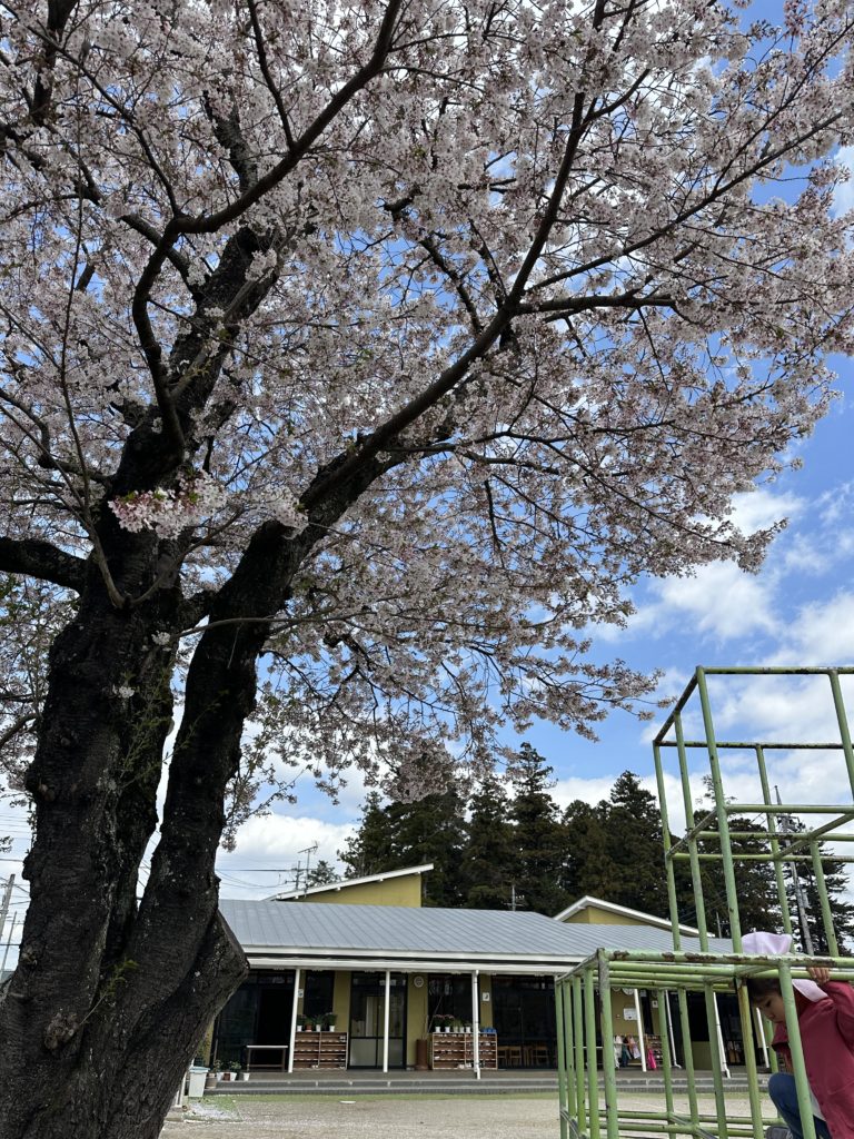 サクラは子ども達が「キレイだね」と言い、風に舞う花びらを捕まえようと、うれしそう。