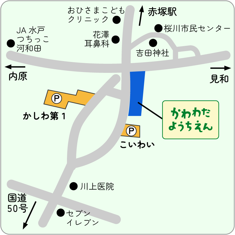 ・マイカー通園の方には、専用駐車場をご利用いただけるようにしてあります。(詳しい地図参照)